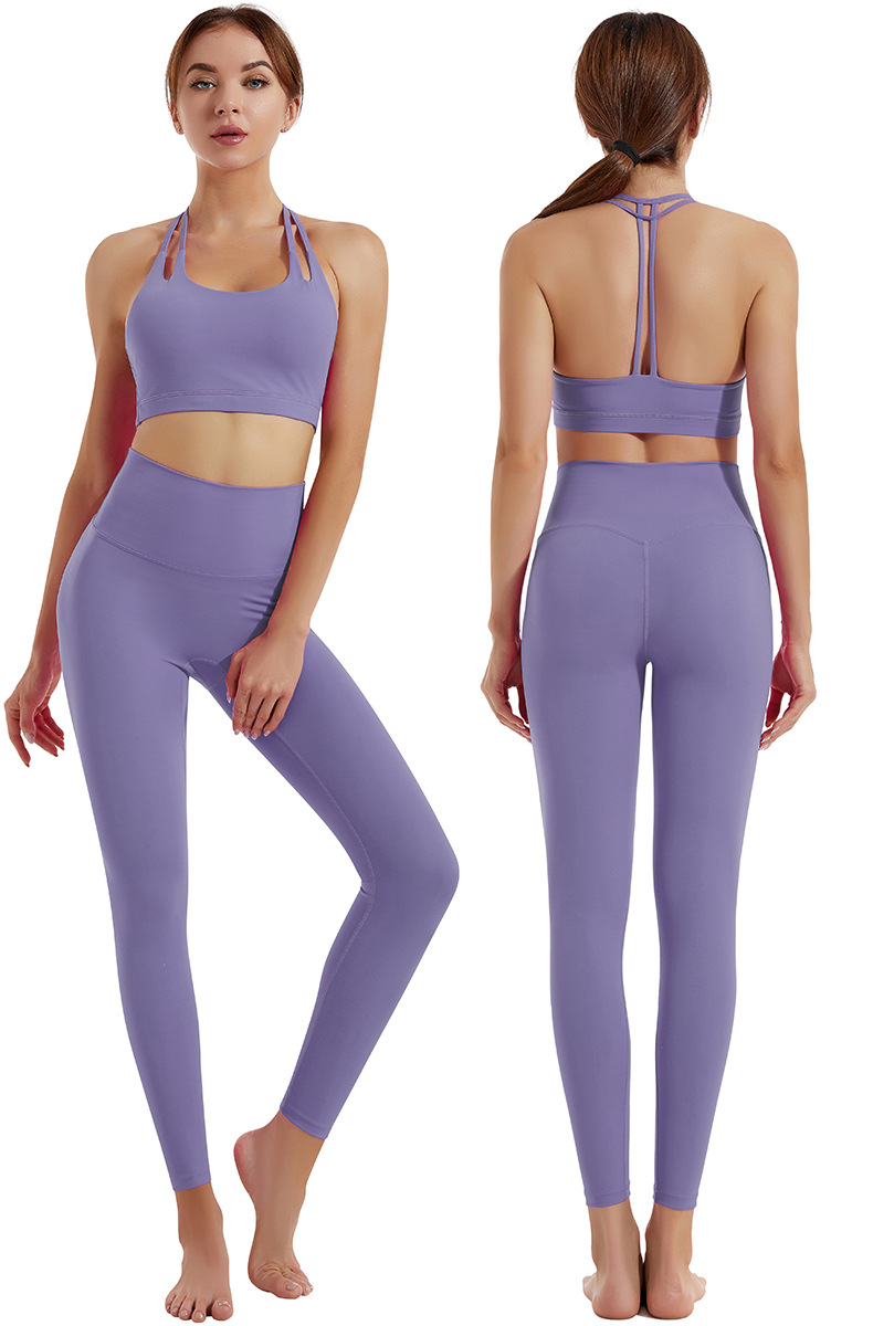 Yoga clothing set women's shock-absorbing gathering sports bra high waist and hip lifting fitness pants two-piece set